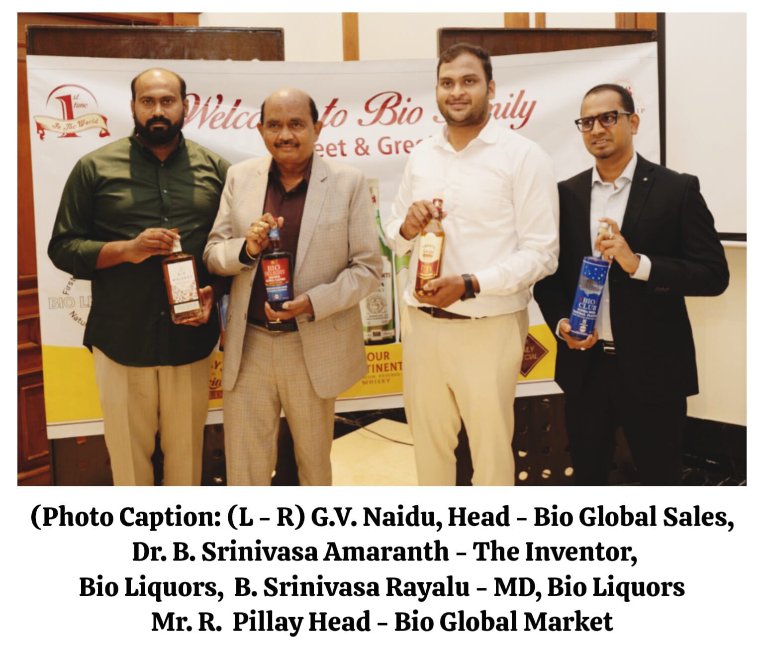 BIO India celebrates its Victory in launching Bio-Liquor products in Hyderabad, including Bio Whisky, Today’s Special Gold Bio Whisky, Daily’s Special Brandy, Wild Fox Whisky, and En-Sign Bio Brandy, all manufactured within India, USA, and Nepal and set to be distributed in select states, Telangana, Odisha & Punjab.